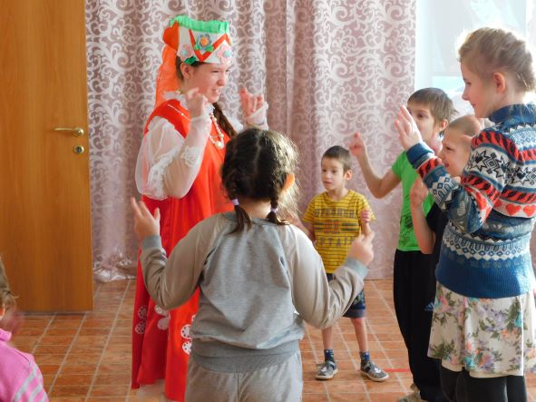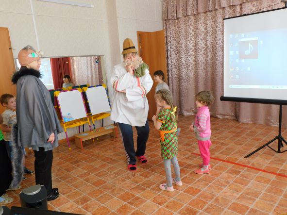 Сказочные персонажи: Арина Родионовна, Старик-рыбак, кот Баюн, Царевна рассказывали свою сказку и вовлекали зрителей в игры: «Рыбка попляши!», «Собери кораблик», «Волшебное зеркальце».