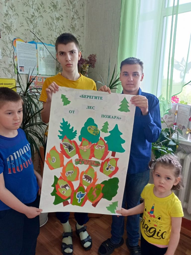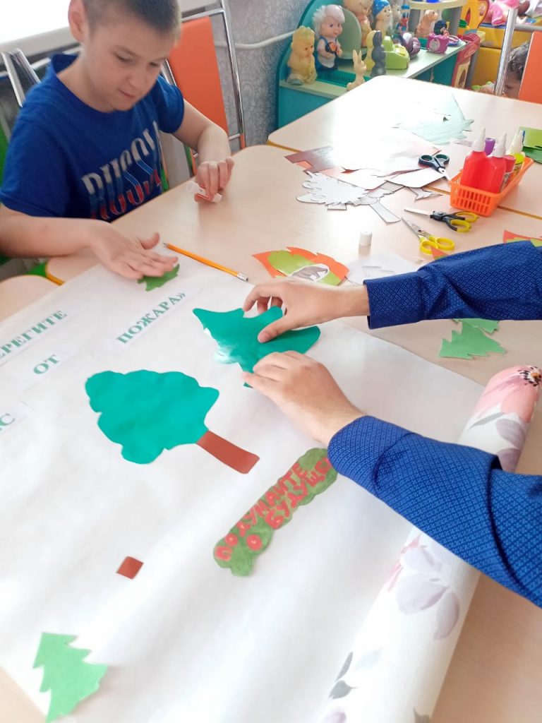 Главной актуальной темой на сегодняшний день являются пожары. В основном виновниками лесных пожаров является человек! Это серьезная угроза, как людям, так и природе. Пожар в лесу – это горе для всех его обитателей: зверей, птиц, растений, грибов. Поэтому в МКУ “Реабилитационный центр” с детьми была проведена очередная беседа о правилах поведения человека на природе, о пожарной профилактике на природных объектах и правильном обращении с огнём. В ходе беседы специалистом было прочитано стихотворение С.Маршака “Пожар”, рассмотрены иллюстрации лесных пожаров. В завершении беседы ребята коллективно оформили коллаж “Берегите лес от пожара”. Работа получилась интересной и познавательной.