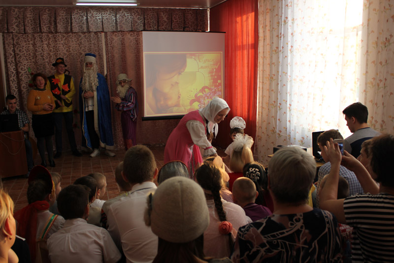В зале собрались ребята, их мамы, папы и бабушки, сотрудники учреждения. Праздник получился добрым и веселым. К ребятам в гости пришли знакомые герои – Маша и Медведь, домовенок Кузя и Баба-яга. Вместе с ведущими праздника – двумя месяцами года Ноябрем и Декабрем и гостями праздника дети и их мамы с удовольствием участвовали в играх и конкурсах, исполняли песни, частушки, рассказывали стихи. И, конечно же, на празднике не обошлось без подарков! Дети подарили мамам поделки, сделанные своими руками.