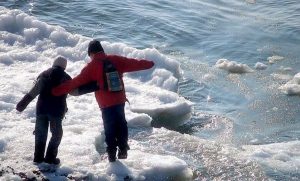 Когда вы наблюдаете за ледоходом с моста, набережной причала, нельзя перегибаться через перила и другие ограждения.