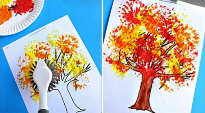 • рисование тычком (жёсткая кисть или ватная палочка; опускаем ватную палочку или жёсткую кисть в краску и точными движениями делаем тычки по альбомному листу, палочки или кисть будут оставлять чёткий отпечаток, форма отпечатка будет зависеть от того, какой формы был выбран предмет тычка). Нарисованная ватной палочкой, например, мимоза получается пушистая и красивая, краска не растекается и не размазывается;