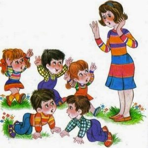Опуская руки, играющие останавливаются, затейник показывает какое-нибудь движение. Все дети повторяют это движение.