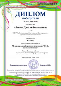с победой в дистанционном мероприятии Международного творческого конкурса