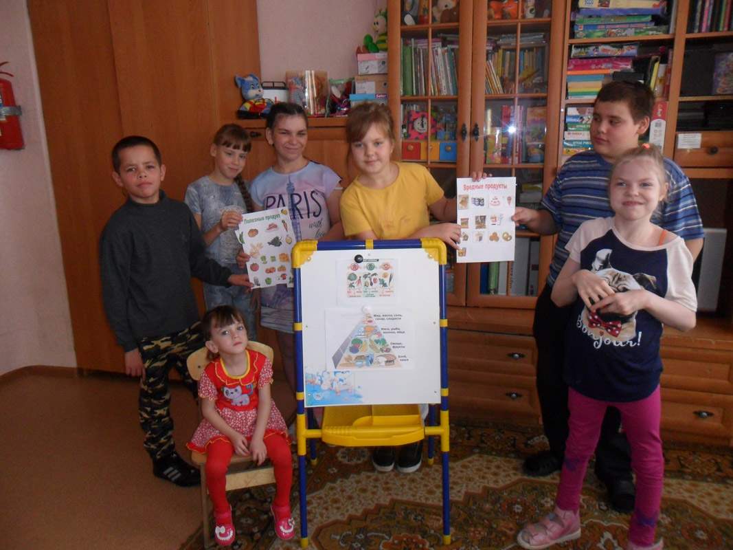 В процессе беседы специалист использовала наглядный материал, художественное слово, сюрпризный момент. Дети в игровой форме справлялись с игровыми проблемными ситуациями, которые могут встретиться в жизни человека. С помощью дидактических игр «Наполни корзину полезными продуктами», «Съедобное, несъедобное» ребята составляли пирамиду «Полезные и вредные продукты», где наглядно было видно, что из еды самое вредное для здоровья и какие продукты более полезны для организма. В итоге, выполняя эти нетрудные задания, ребята усвоили, что еда должна быть не только вкусной, но и полезной. А также сделали вывод, что для поддержания здорового иммунитета кроме основных факторов необходимы еще и витамины, которые содержатся в продуктах питания.