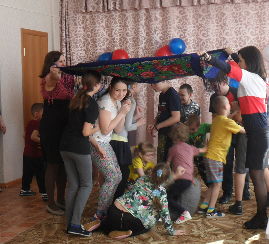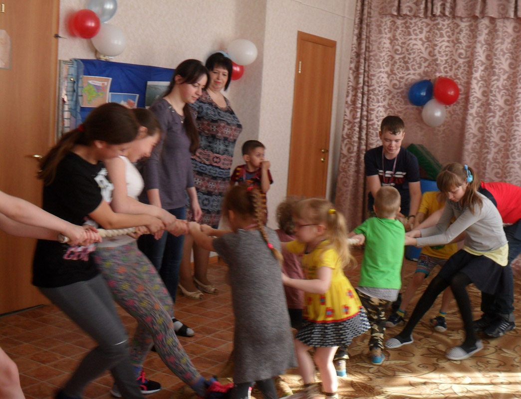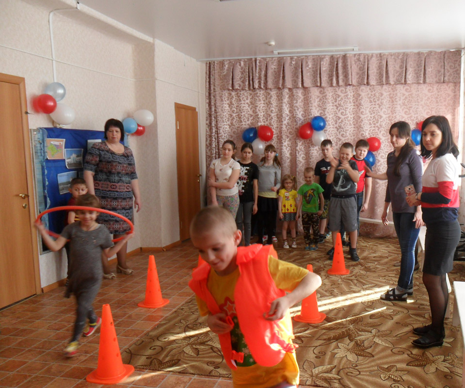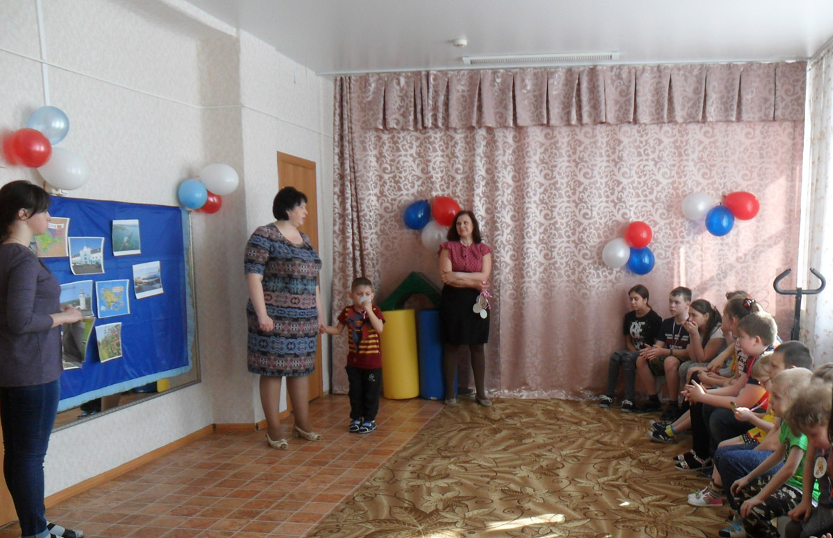 Воспитанники побывали на черном море и даже «переправились» по нему. В ходе эстафет «Попади в цель» и «Сбор яблок», выявили самых сильных ловких и смелых. Больше всего детям понравились крымско-народные игры: «Перетяни канат» и «Медведи и пчелы». По завершению путешествия ребята собрали флаг России из воздушных шаров, как символ объединения Крыма и России.