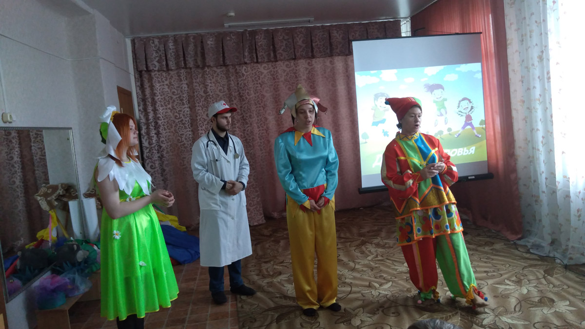 Герои праздника Ромашка и Доктор Айболит рассказали детям о том, что занятия физкультурой и спортом, соблюдение гигиены помогут им быть здоровыми. Ребята с ведущими побывали в Стране Здоровья. Здесь они отгадывали загадки, участвовали в словесных и музыкальных играх, спортивных эстафетах. Играя, дети узнали о том, как можно поддерживать, укреплять и сохранять свое здоровье.
