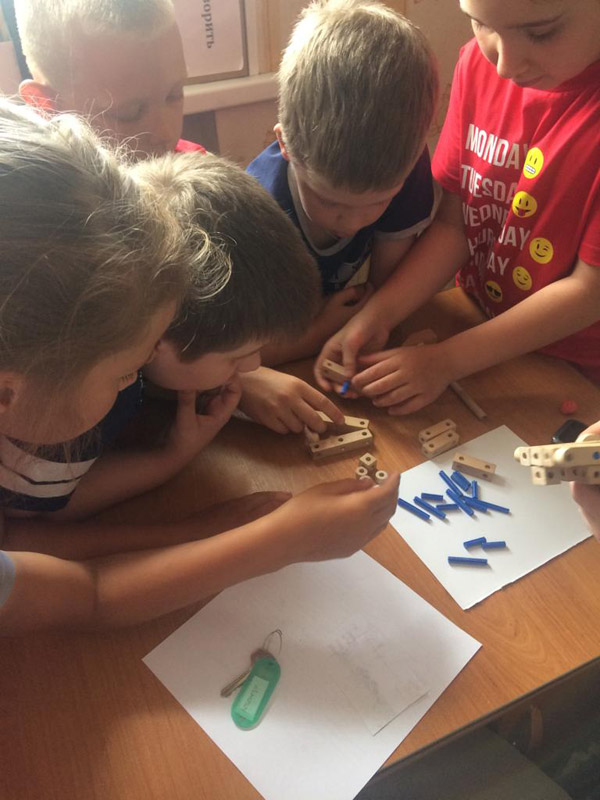После выполнения всех заданий ребята собрали из частей поздравительную открытку городу, которые они получили на «заводах». И за свои старания каждый получил приз.