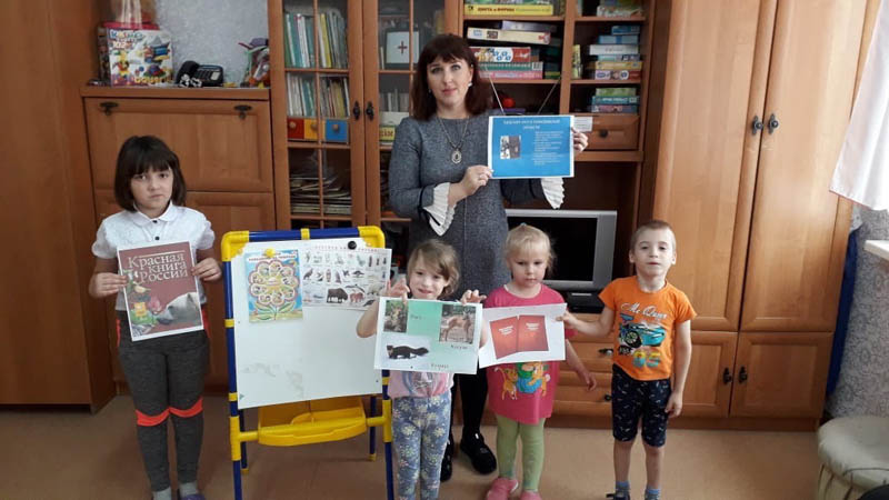 Специалист познакомила ребят с Красной книгой, рассказала о редких растениях и животных, которые занесены в неё. Провела продуктивную игру – соревнование «Кто быстрее», где юные экологи с удовольствием собирали «мусор», представляя, что они на лесной поляне. В процессе занятия дети разгадывали загадки о редких животных и растениях. Упражнялись, как вести себя на природе, если вспыхнул лесной пожар.