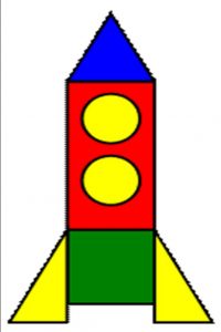 – А теперь давайте нарисуем свои ракеты из геометрических фигур.