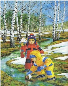 -Да, весна нас радует и ярким желтым солнышком, и чистым голубым небом, и веселым журчанием ручейков и красивыми добрыми весенними праздниками. Послушайте стихотворение.