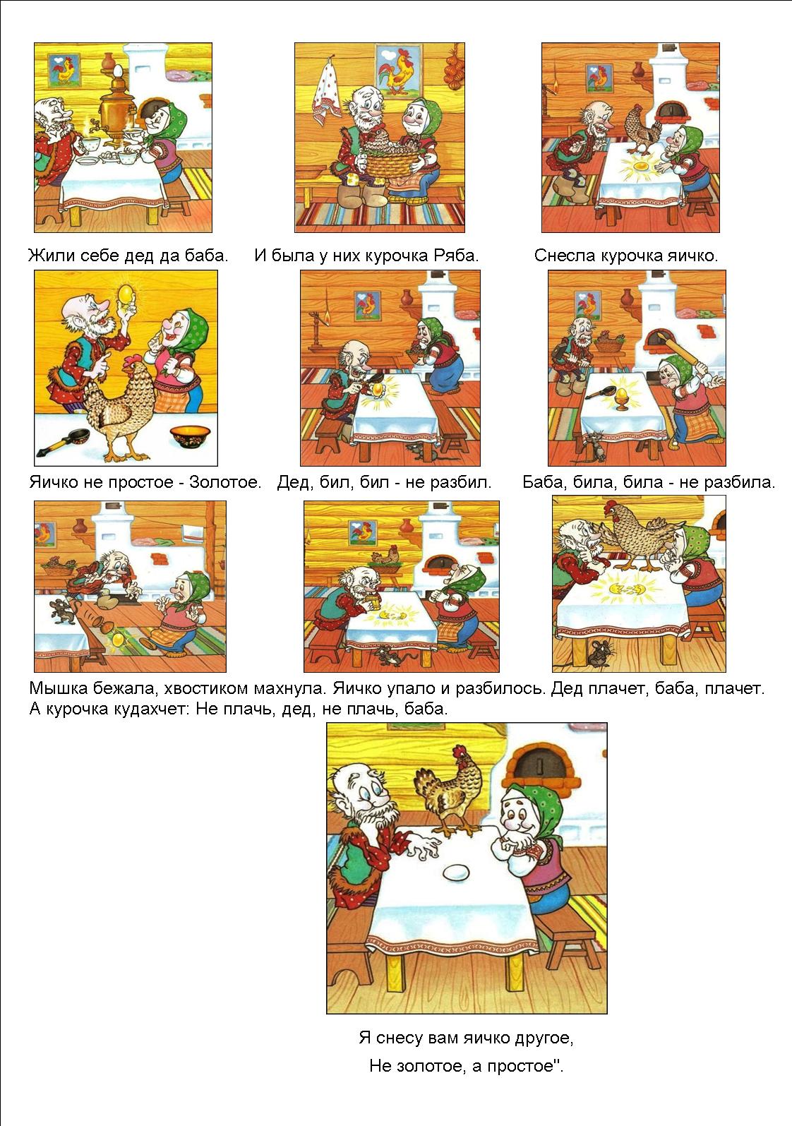 – Давайте вспомним сказку про «Курочку Рябу». Можете рассказать?