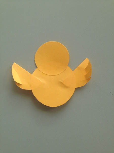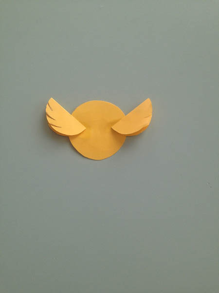 6.На круг диаметром 5 см   приклеиваем полученные два крыла.