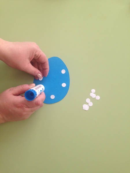 1. На основу будущей открытки с помощью клея приклеиваем  белые маленькие кружки.