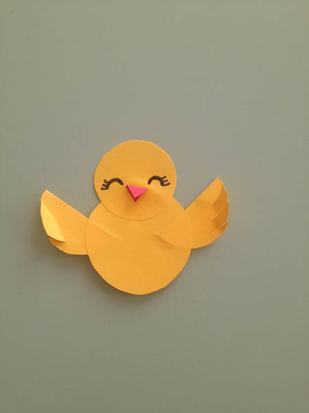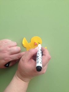 1. Фломастером чёрного цвета рисуем получившемуся цыплёнку глазки.