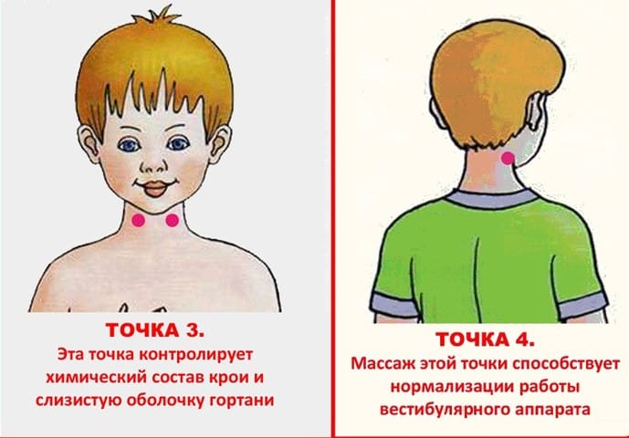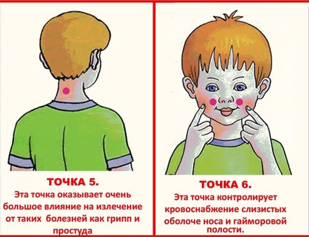 Массаж необходимо производить по точкам, по часовой стрелке, один раз в день, в течение пяти дней. Будьте здоровы!