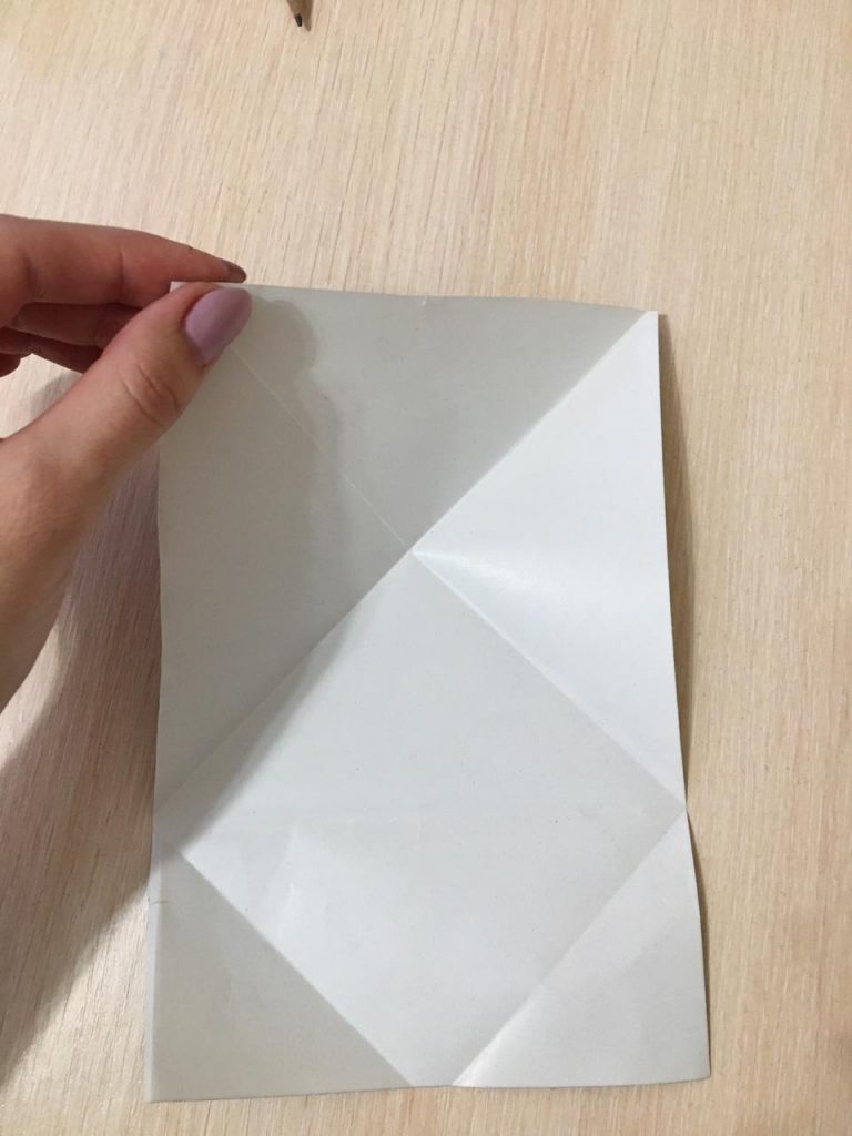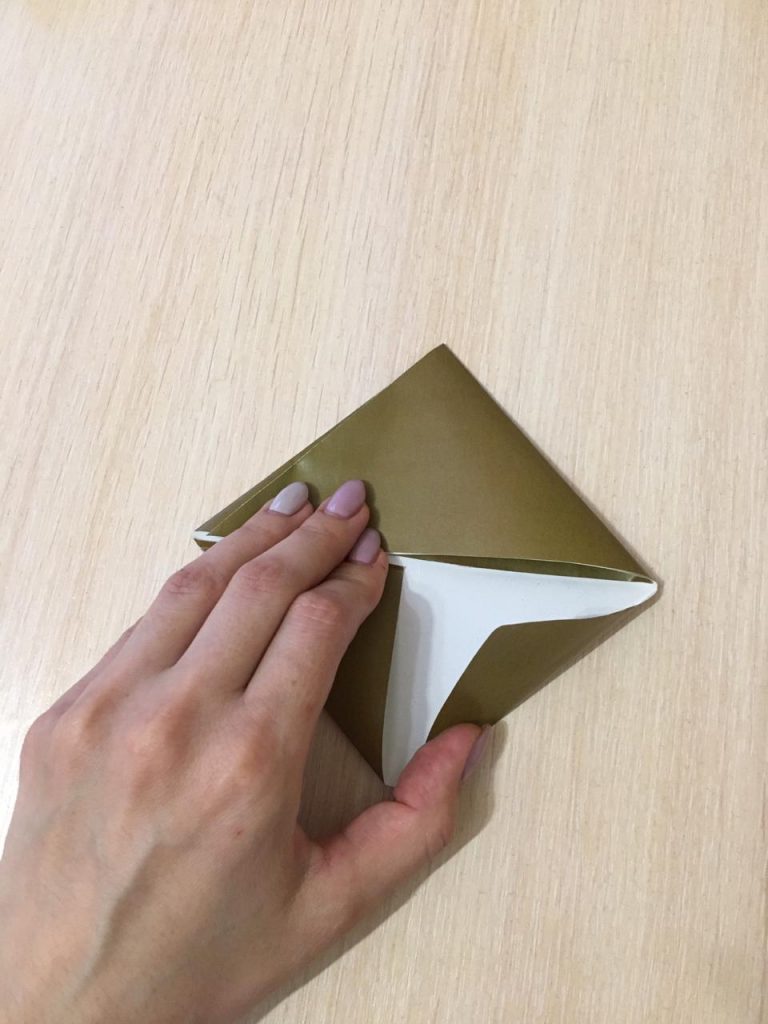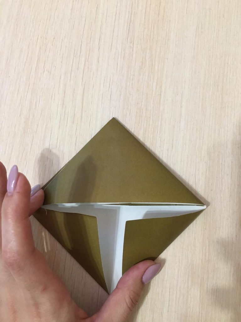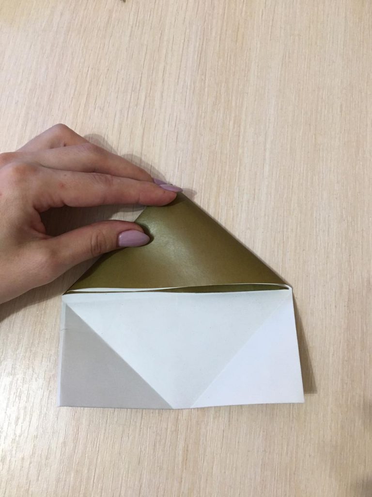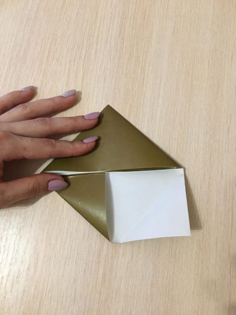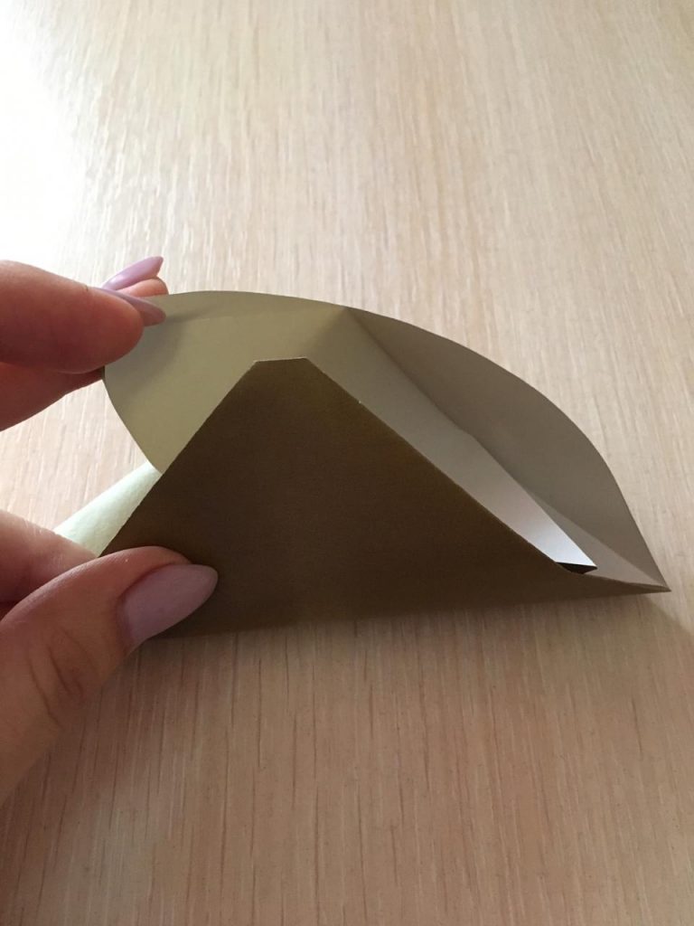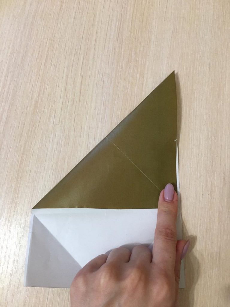4.2. Затем, получившийся треугольник, складываем пополам, как на картинке.