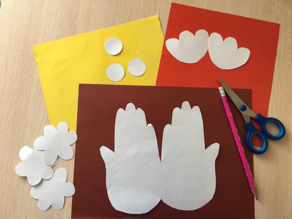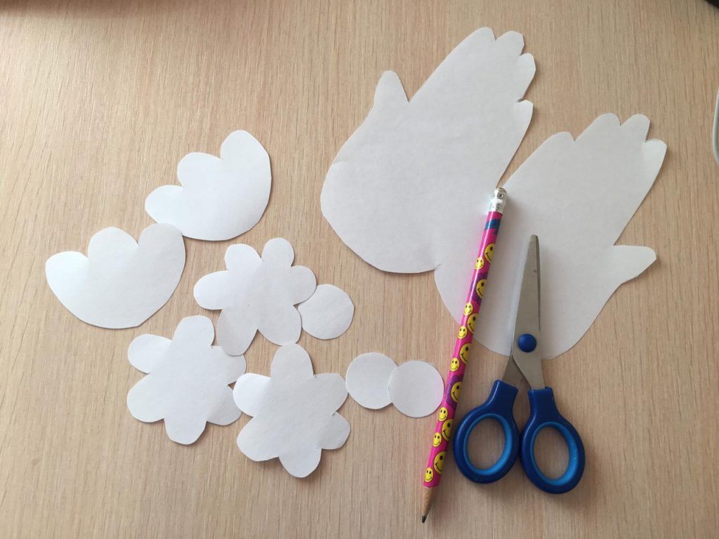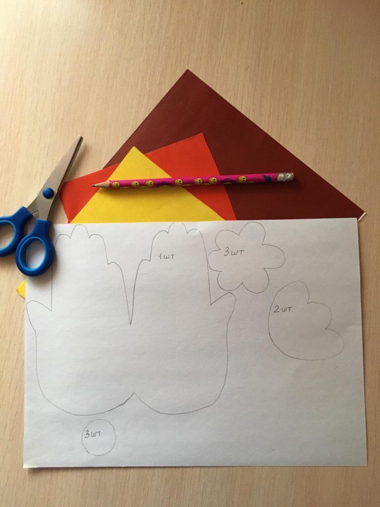 3. Из цветной бумаги с помощью шаблонов вырезаем детали открытки.