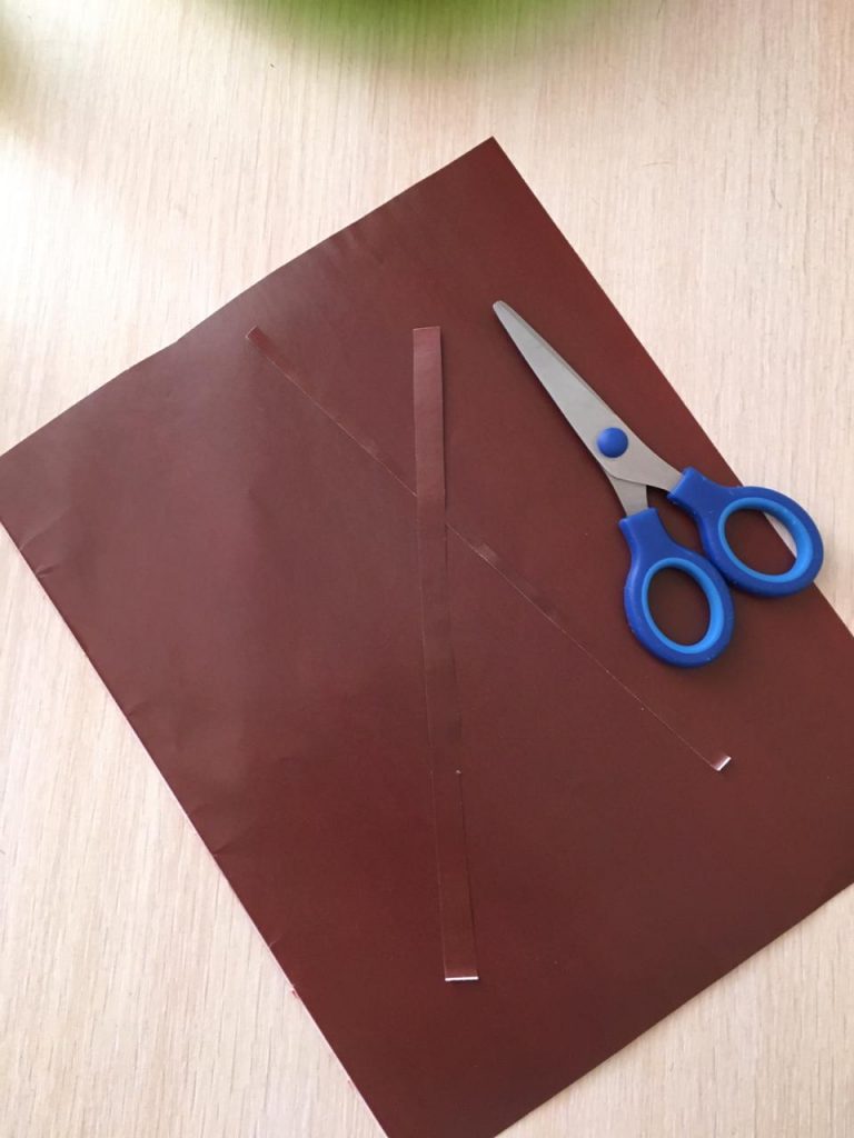 5. Осталось сделать гнездо. Из коричневой бумаги нарезаем полоски разного размера