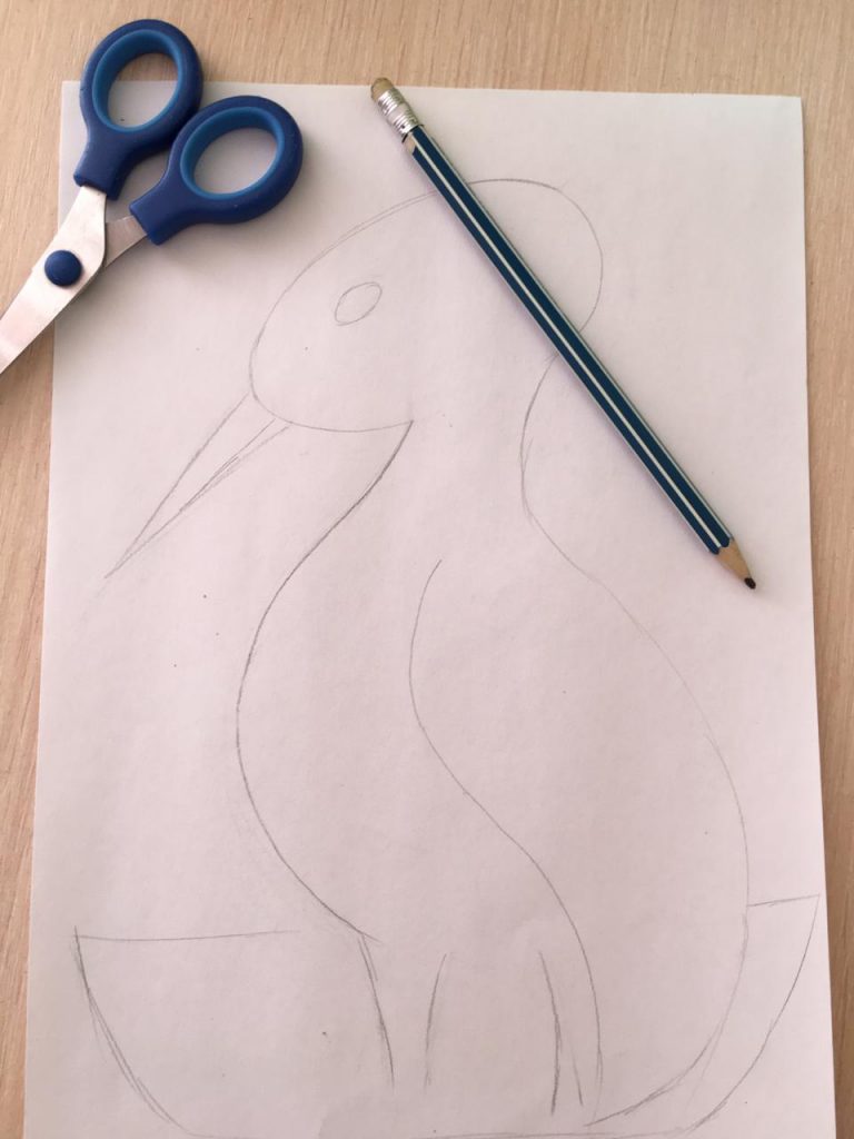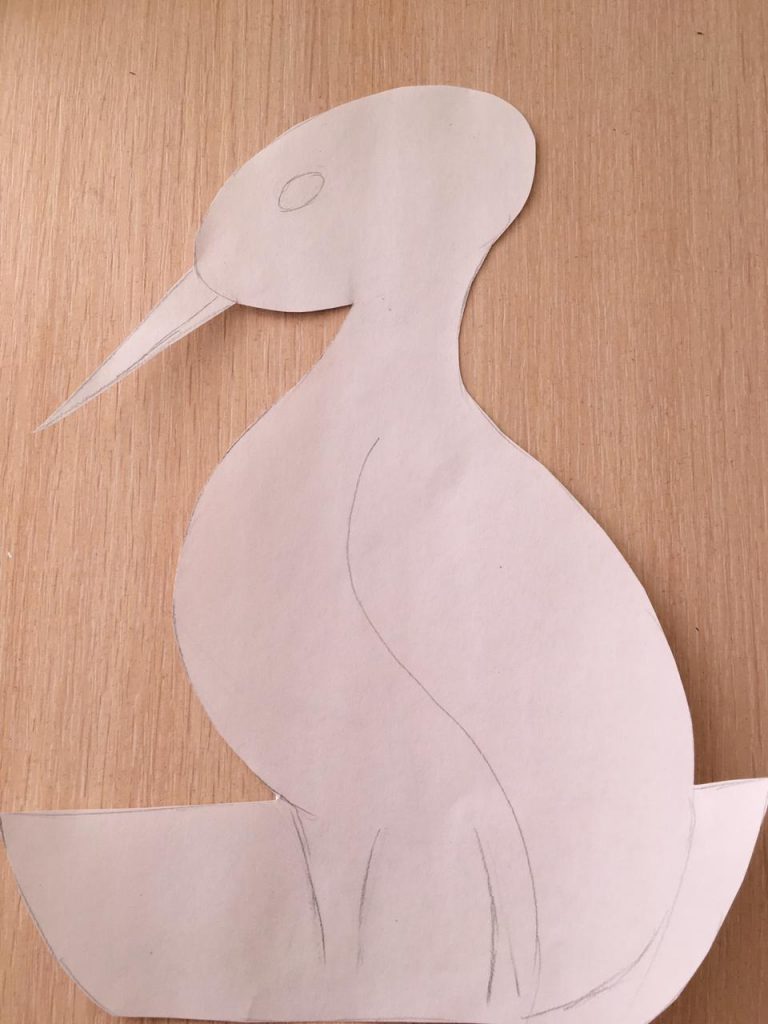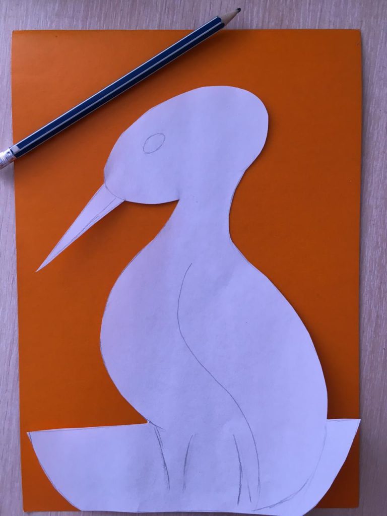 1. На белом листе бумаги рисуем шаблон цапли и вырезаем