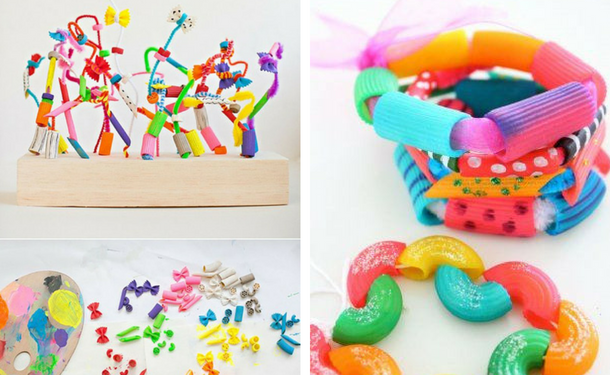 Все мы видели поделки из макарон, которые дети делают где-то на занятиях, так почему бы им не поиграть с сухими макаронами и дома.