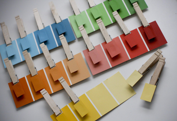 Еще одно занятие, которое не только развлекает, но и развивает. Для этой игры для детей своими руками купите цветной картон, разрежьте на маленькие квадратики разных цветов и прицепите на прищепку. Разложите перед ребёнком палитру цветов и пускай он постарается прикрепить прищепкой квадратик картона нужного цвета. Это и веселая, и поучительная игра для малышей.