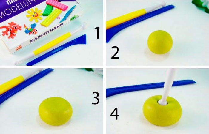 4. Сплющьте заготовку и продавите центр круглым кончиком стеки-бульки.