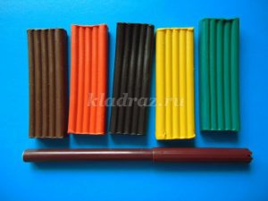7. Берем оранжевый пластилин и раскатываем из него жгутики.