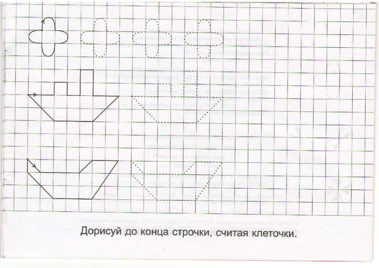 Ребенку дается лист в клеточку (крупную или мелкую), образец для рисования (орнамент или замкнутая фигура), карандаш. Необходимо перерисовать узор по клеточкам.