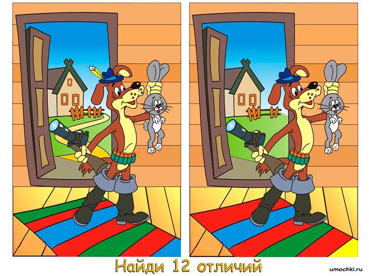 Предлагается карточка с изображением двух картинок, имеющих несколько различий. Необходимо как можно быстрее найти эти отличия.