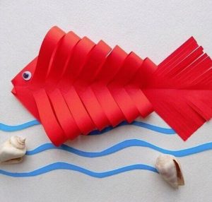 Здравствуйте уважаемые мамы, папы и взрослые и ребята! Как вы думаете,какими должны быть детские поделки? Правильно! Во-первых, они должны быть несложными в исполнении, чтобы ребенок мог быстро увидеть результат своего труда. Во-вторых, готовая поделка должны быть яркой и привлекательной для игр. Именно этим требованиям отвечает наша рыбка, сделанная из цветной бумаги.