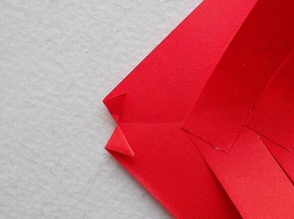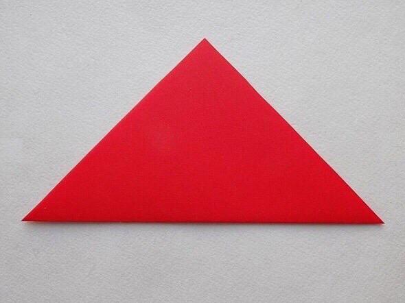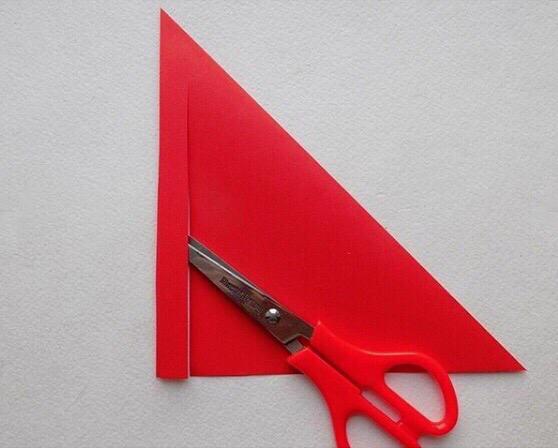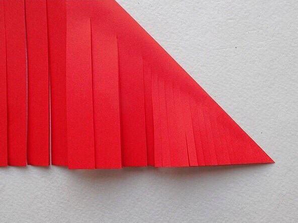 3. Теперь поворачиваем заготовку в виде треугольника следующим образом и начинаем делать разрезы с нижней стороны, но не доходим до диагональной линии сгиба около 1,5 см.