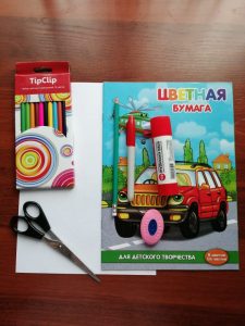 Для выполнения данной работы нам потребуются: альбомный лист, простой карандаш, ластик, фломастер красного цвета, цветные карандаши, цветная бумага, ножницы, клей.