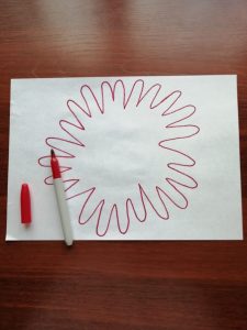 - Обводим красным фломастером получившееся солнышко, внутри ластиком стираем лишние контуры.