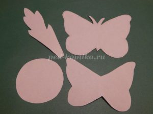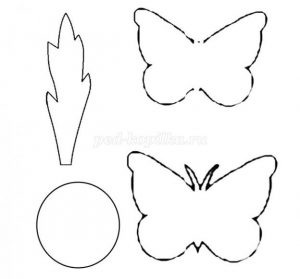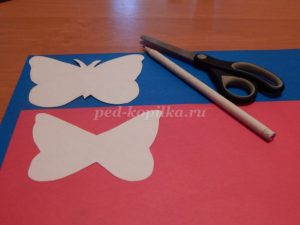 Из цветной бумаги , выбранной по своему вкусу, по шаблону вырезаем бабочек.