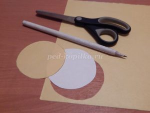 Начинаем делать ромашку. Из желтой бумаги вырезаем по шаблону кружок