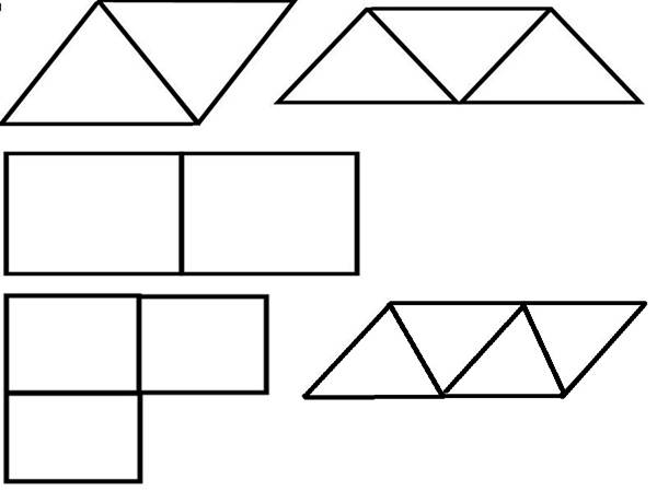 Как только ребенок отлично усвоит выкладывание картинок по шаблонам и самостоятельно, он готов к логическим играм. В таких задачах требуется нестандартный подход к решению и смекалка. А справятся ли с заданиями взрослые? Попробуйте отгадывать загадки вместе с детьми. Так вы не только интересно проведёте время, но и вместе с ребёнком сделаете большой шаг на пути к изучению мира. Задания в головоломках разнообразны. Можно, например, убрать лишние детали, чтобы получился другой рисунок, добавить недостающие элементы или переложить палочки местами. В некоторых случаях может быть даже несколько вариантов решения загадки. Кстати, отличной альтернативой счётным палочкам могут стать обыкновенные спички или зубочистки. Примеры логических задач: Составь из 7 элементов 2 равных квадрата. На столе 5 палочек. Как при помощи них сделать два одинаковых треугольника? Как из 7 палочек сделать 3 треугольника? Перед ребёнком 9 спичек, нужно составить 4 равнозначных треугольника. Дано 10 спичек, делаем 3 равных квадрата.