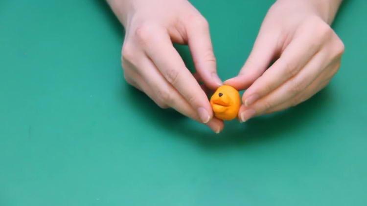 5.Сделаем носик: маленький кусочек черного пластилина скатаем в шарик и посадим на мордочку.