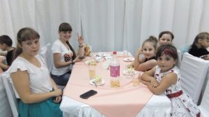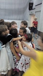 Так совпало, что в этот день наша воспитанница Ксения отмечала свое совершеннолетие. Ребята водили поздравительный хоровод, пели песню и дарили подарки. Кроме детей и сотрудников Реабилитационного Центра она принимала поздравления от коллектива ТЦ «Русь».