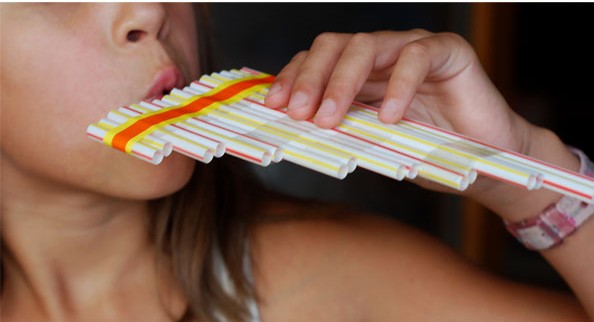 Если взять 6–8 пластиковых трубочек, обрезать их и склеить между собой скотчем, получится забавный музыкальный инструмент.