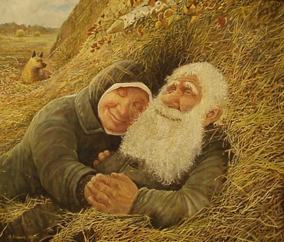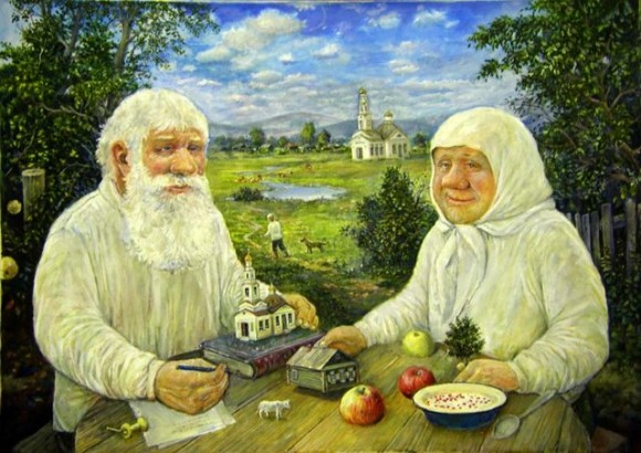 Если вы любите находить в интернете позитивные, теплые, добрые картинки, то наверняка вам знакомы бабушки и дедушки художника Леонида Баранова. Светлые и лучистые старичок со старушкой то катаются на лыжах, то вместе едят молоко с малиной, то дерево вековое обнимают, а то и на ходулях ходят…
