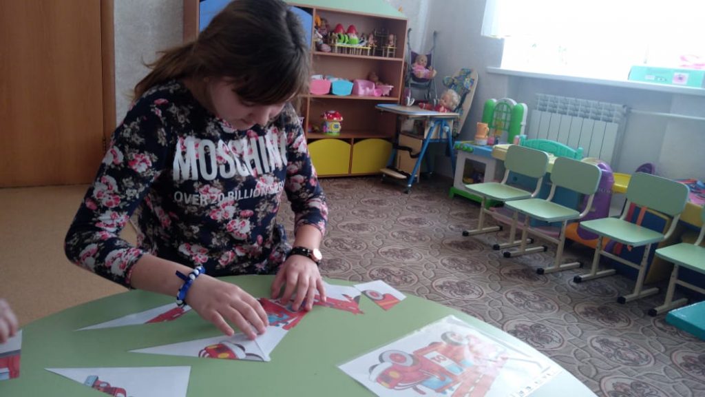 Дети групп «Звездочки» и «Непоседы» активно отгадывали загадки, отвечали на вопросы в конкурсе «Вопрос-ответ», собирали пазлы (пожарная машина, пожарный).