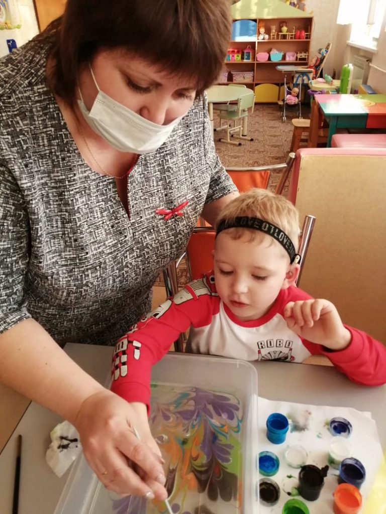 Занятия с детьми с использованием рисования на воде Эбру включены в реабилитационный курс и проводятся как индивидуально, так и в групповой форме.