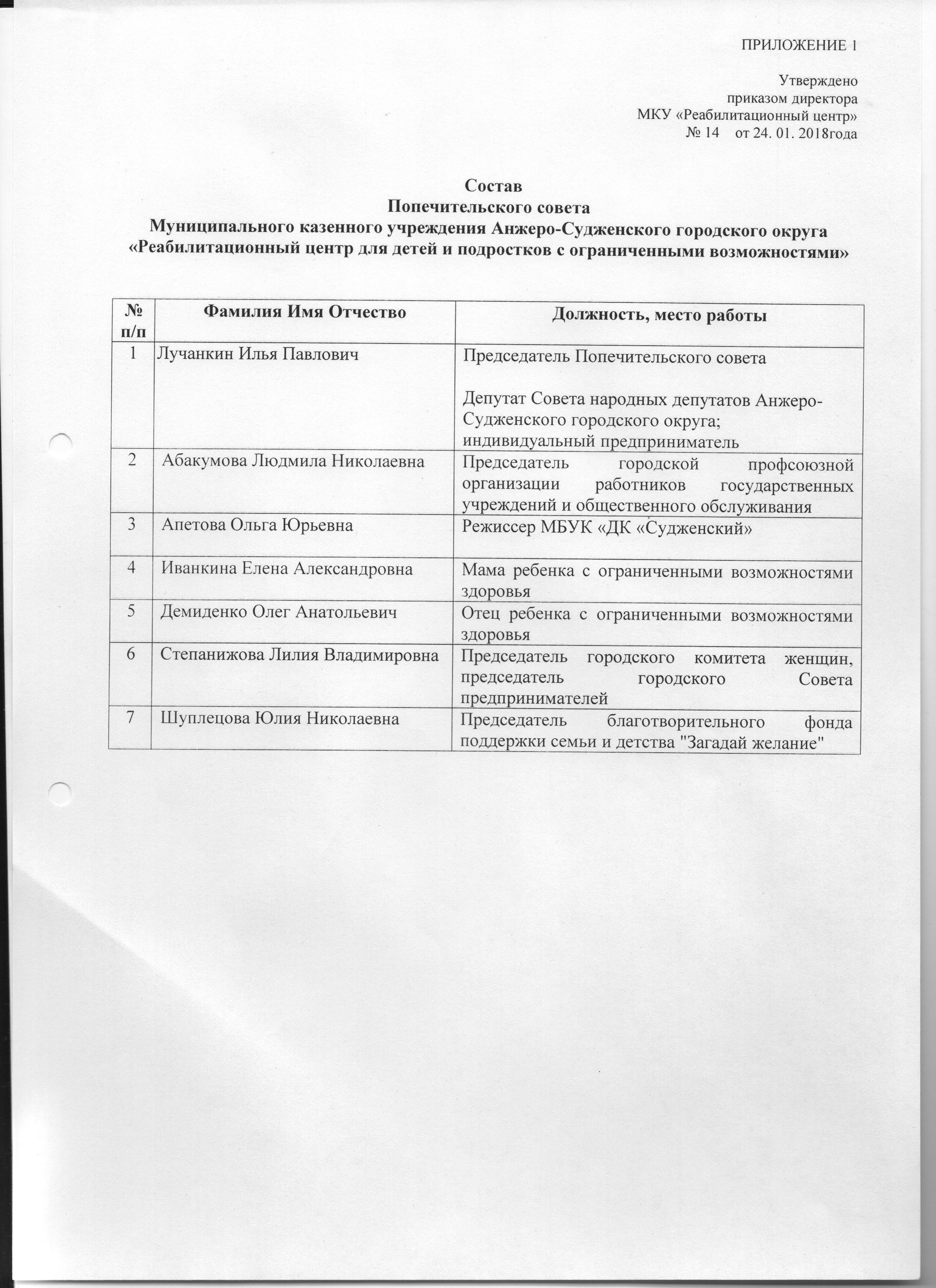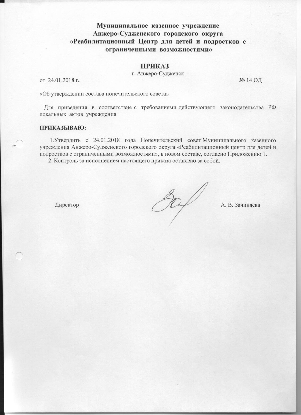 Приказ от 24.01.2018 г. “Об утверждении состава попечительского совета”