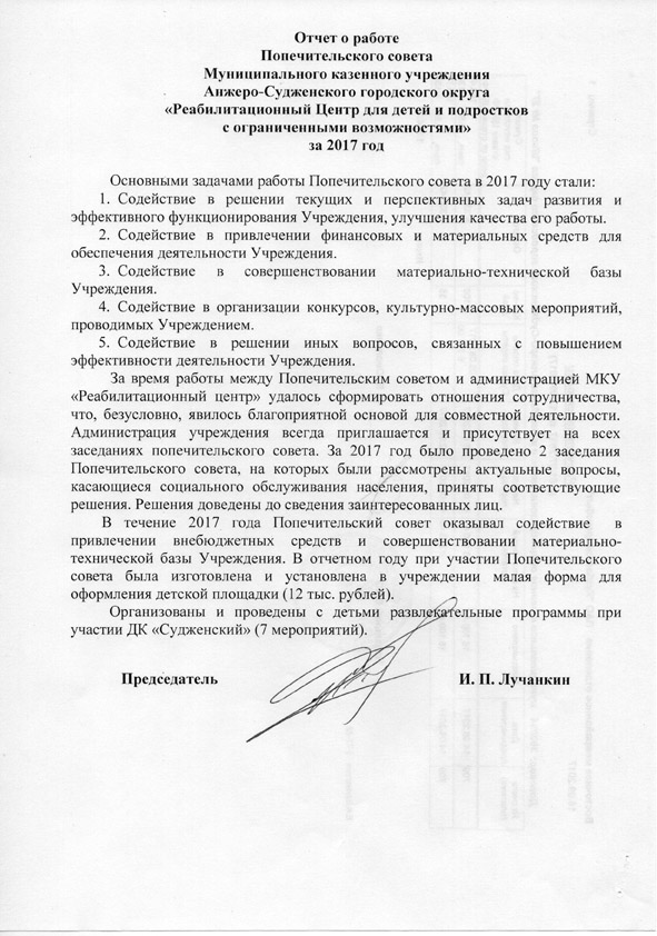 - Отчет о работе попечительского совета МКУ Реабилитационный центр за 2017 г.