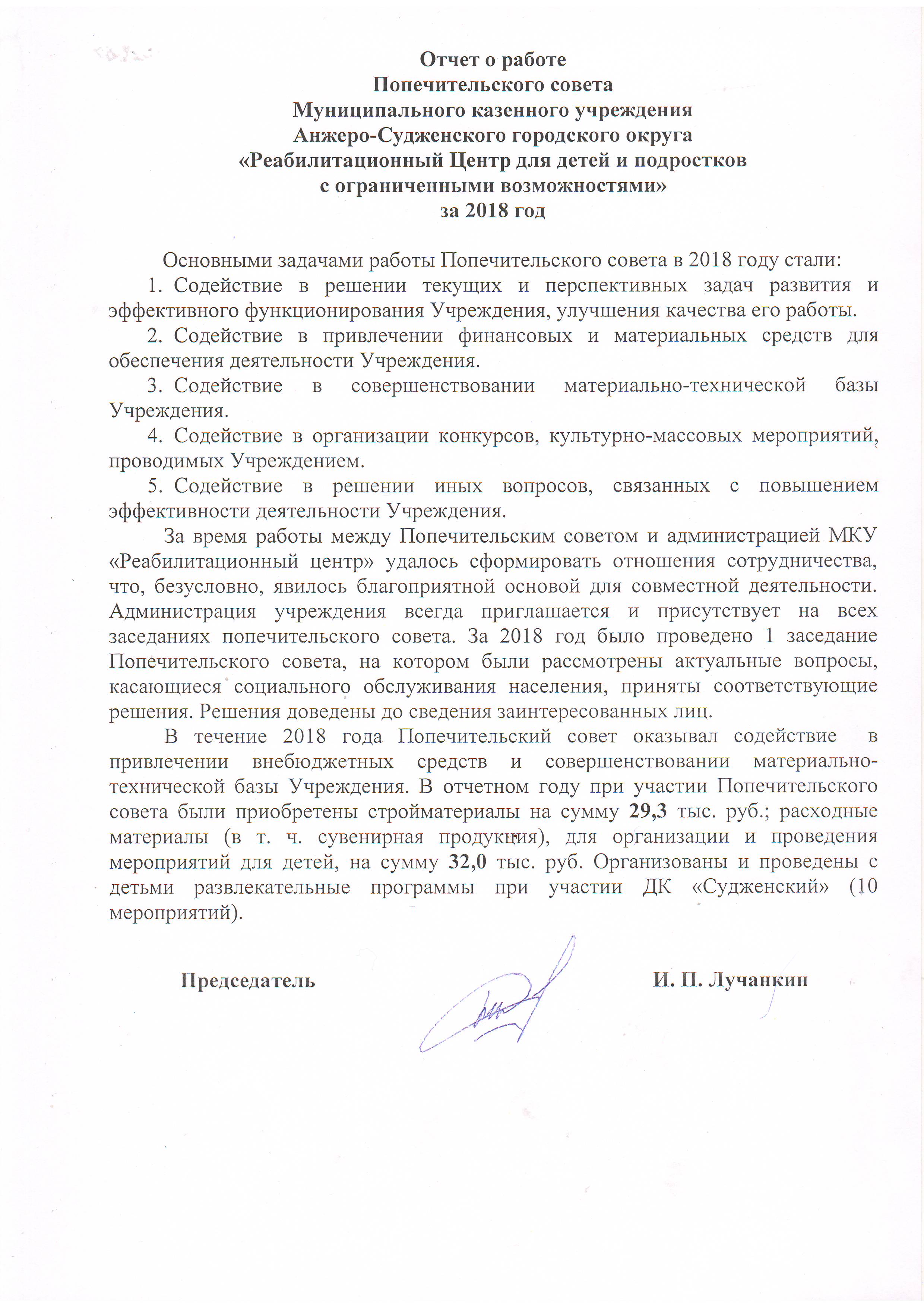 - Отчет о работе попечительского совета МКУ Реабилитационный центр за 2018 г.